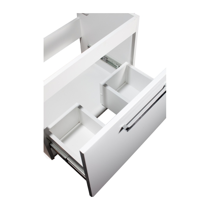- Стильный дизайн – белый глянцевый фасад с хромированной ручкой-скобой впишется в любой интерьер.