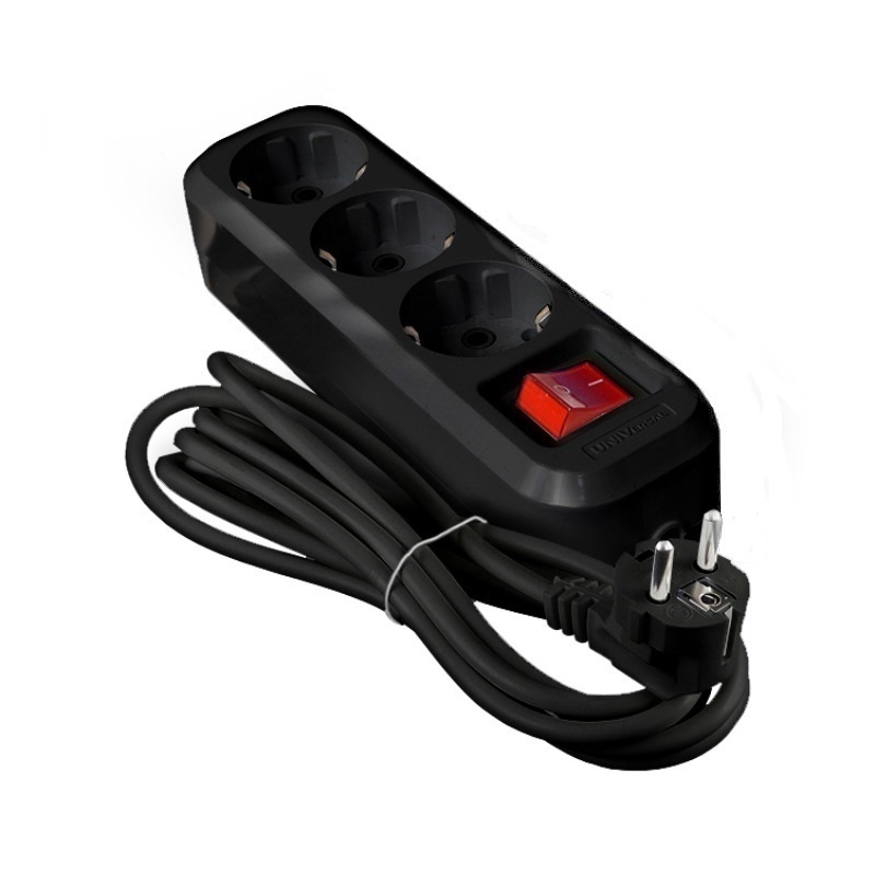 Удлинитель бытовой 2020, ПВС 3х1, 2990 Вт, 13А, с/з, 3 м, черный