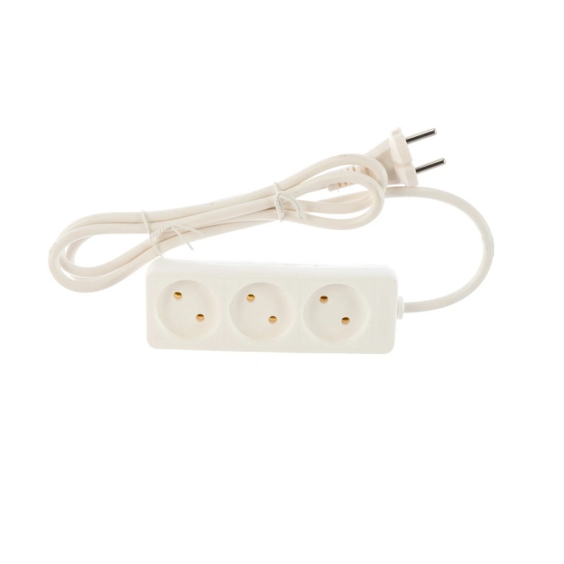 Удлинитель бытовой 481S-1301, 3 гнезда, ПВС, 2200 Вт, б/з, 1,5 м, белый