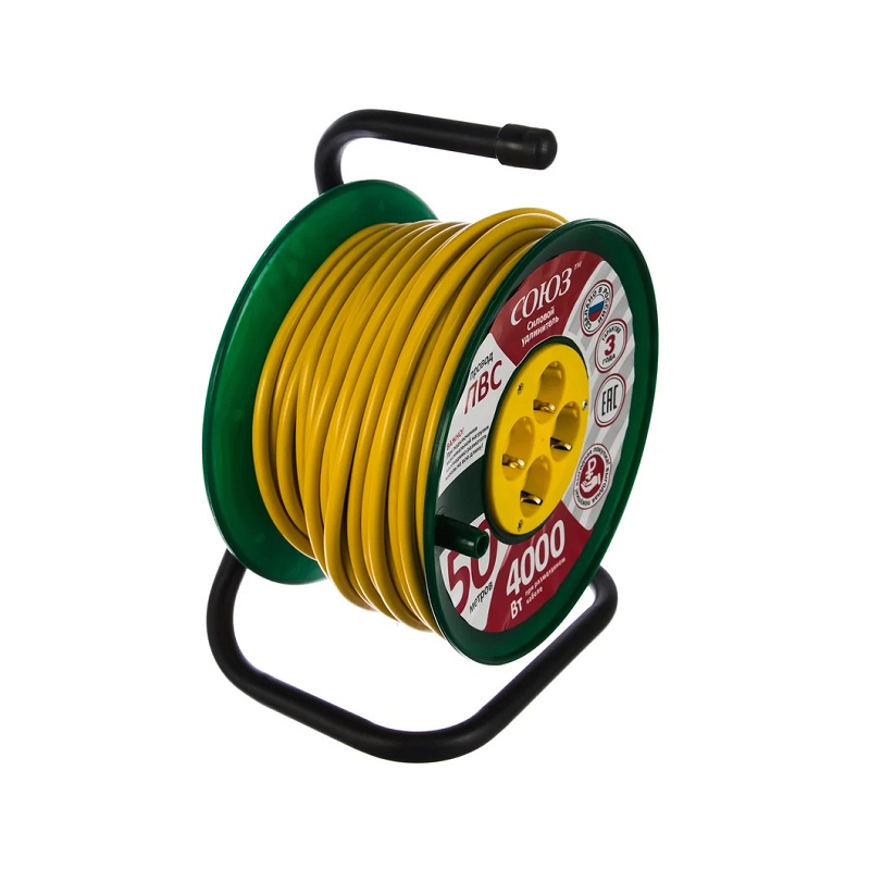 Удлинитель силовой на катушке 481S-3705, ПВС, 4000 Вт, с/з, 50 м