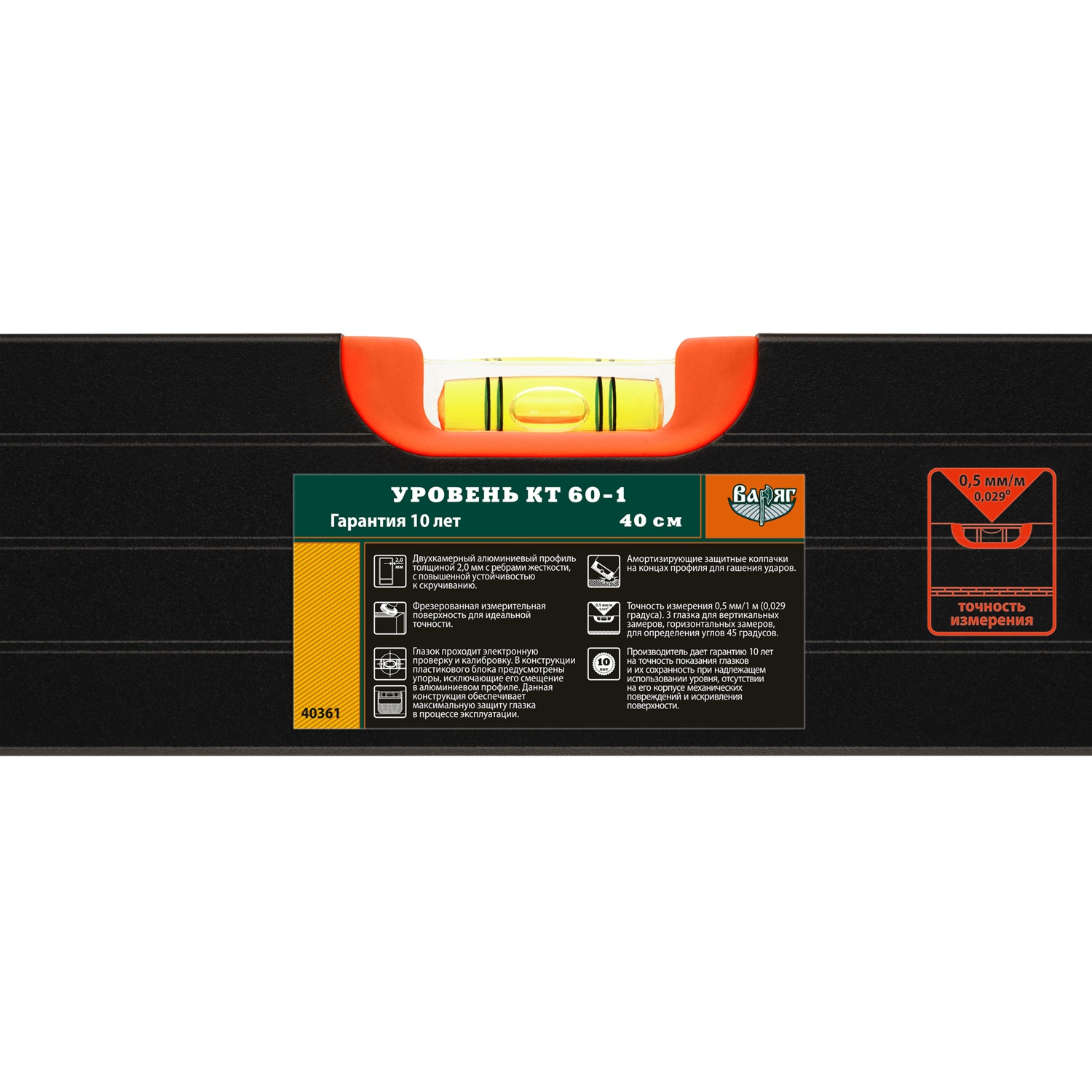 Уровень Варяг 40361 КТ 60-1 усиленный, 3 глазка, 400 мм