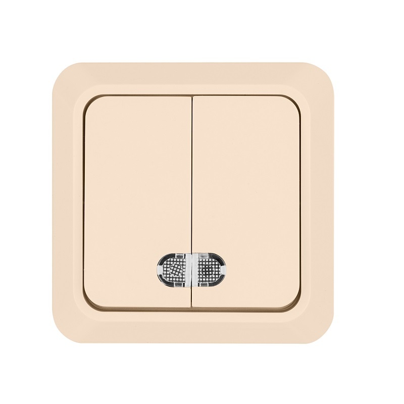 Выключатель о/у Ладога SQ1801-0008, 2 клавиши, с/инд, слоновая кость