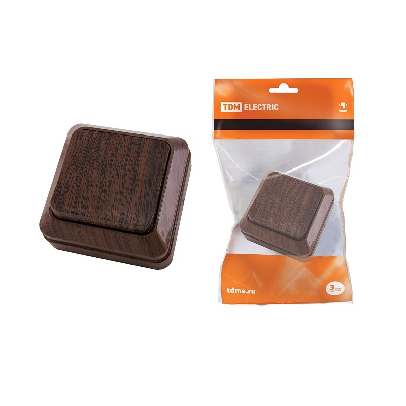 Выключатель о/у Ладога SQ1801-0027, 1 клавиша, б/инд, темное дерево