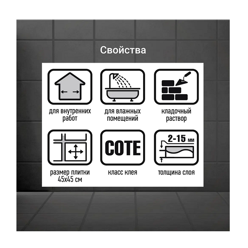 - Приклеивание плитки без сползания: Обеспечивает надежную фиксацию плитки, что исключает необходимость в повторных работах и повышает качество укладки.