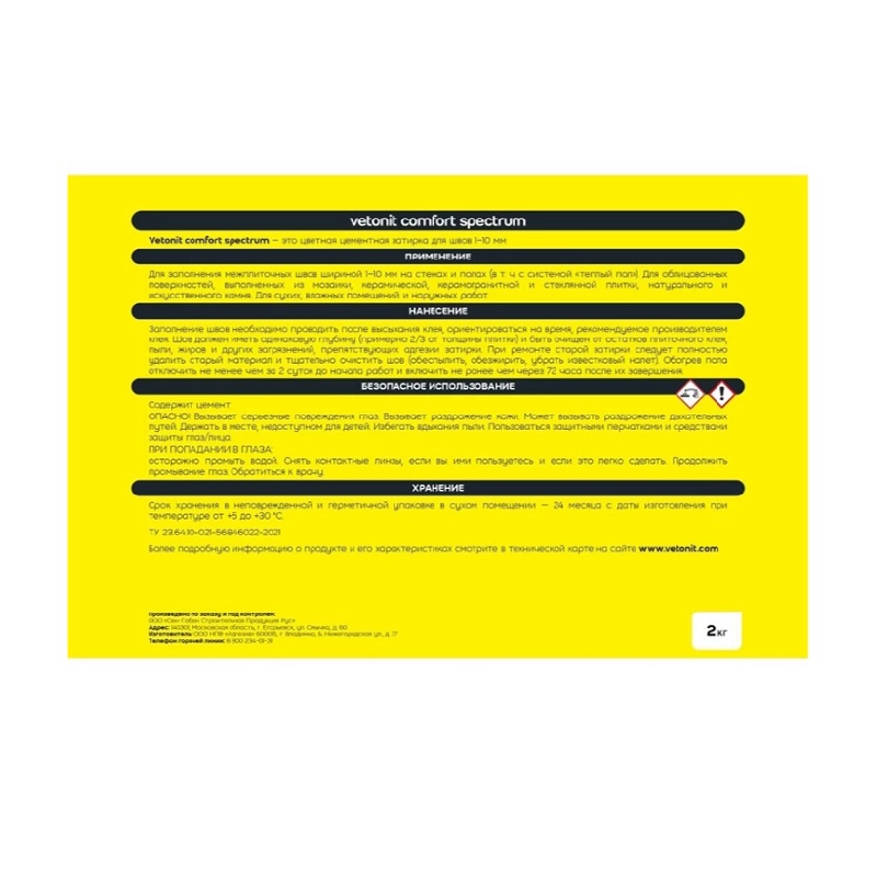 Затирка Vetonit Comfort Spectrum 18 бакаут, 2 кг