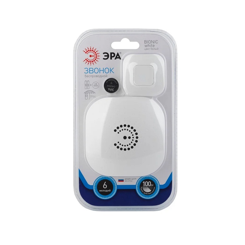 Звонок беспроводной Era Bionic 90666, батарейки 2хАА, 36 мелодий, IP44